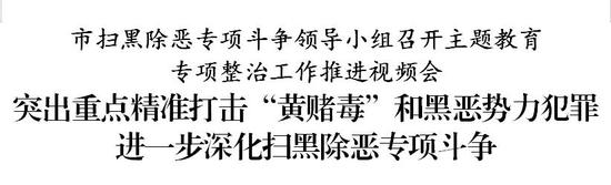 会议指出,“黄赌毒”和黑恶问题是治安顽疾、社会毒瘤,严重危害人民群众生命财产安全,人民群众深恶痛绝。坚决整治“黄赌毒”、坚决打击黑恶犯罪,是政法机关坚守和践行初心使命的具体体现,是创建“无黑”城市的重要要求。要按照中央、市委“不忘初心、牢记使命”主题教育的部署要求,持续加大对“黄赌毒”和黑恶势力听之任之、失职失责甚至包庇纵容充当“保护伞”问题的专项整治力度。