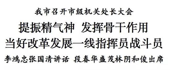 李鸿忠在讲话中指出,党员领导干部的能力水平是事关一个地区发展竞争力的关键因素,特别是处级领导干部担负着承上启下的关键责任,处于直接面对基层一线的关键岗位,日常从事抓落实抓执行的关键工作,是推动天津高质量发展的关键少数。这次市委市政府专题召开市级机关处长大会,充分表明对全市党员干部这支骨干中坚力量的高度重视和殷切重托。我们要紧紧围绕深入学习贯彻习近平总书记20字好干部标准、对县委书记当好“四种人”的重要要求和在中央和国家机关党的建设工作会议上的重要讲话精神,紧紧抓住干部队伍建设和机关党的建设两项重点任务,坚持问题导向,查找差距不足,明确努力方向,更好发挥处级领导干部的中坚骨干作用,切实完成好党和人民赋予的重任。