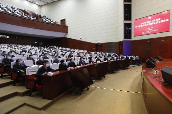 12月16日,市委政法委、市委依法治市办共同举办政法大讲堂暨学习贯彻习近平法治思想专题讲座。著名法学家,中国社会科学院学部委员、研究员、博士生导师李林教授,以“学习贯彻习近平法治思想,开启法治中国建设新征程”为主题作专题辅导讲座。市委常委、市委政法委书记、市委依法治市办主任赵飞主持,市高级人民法院院长李静、市人民检察院检察长宫鸣,市委政法委副书记、委员,市委依法治市办各成员单位,市区两级政法委、政法单位有关领导同志,在市公安局报告厅现场听取专题讲座。