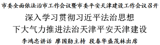 李鸿忠在讲话中指出,习近平总书记在中央全面依法治国工作会议上的重要讲话,高屋建瓴、视野宏阔、内涵丰富、思想深刻,体现了深远的战略思维、鲜明的政治导向、强烈的历史担当、真挚的为民情怀,是指导新时代全面依法治国的纲领性文献。全市各级各部门要认真学习领会,紧密结合天津实际,切实抓好贯彻落实,下大气力推动全面依法治市和平安天津建设开创新局面、再上新水平。