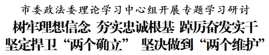 学习研讨中,理论学习中心组成员结合学习党章和习近平总书记“七一”重要讲话精神、党的十九届六中全会精神等重点篇目文章的认识感悟,联系自身工作经历,逐一交流发言。大家一致认为,开展“迎盛会、铸忠诚、强担当、创业绩”主题学习宣传教育实践活动工作是迎接党的二十大胜利召开的重要举措,是坚持全面从严治党、加强党的自我革命的生动实践。要坚决贯彻市委决策部署,在开展主题学习宣传教育实践活动工作中争当先锋、走在前列,聚焦聚力护航党的二十大中心任务,立足天津之特、卫城之责,履行政法机关职责使命,筑牢首都政治“护城河”,坚定捍卫“两个确立”,坚决做到“两个维护”。