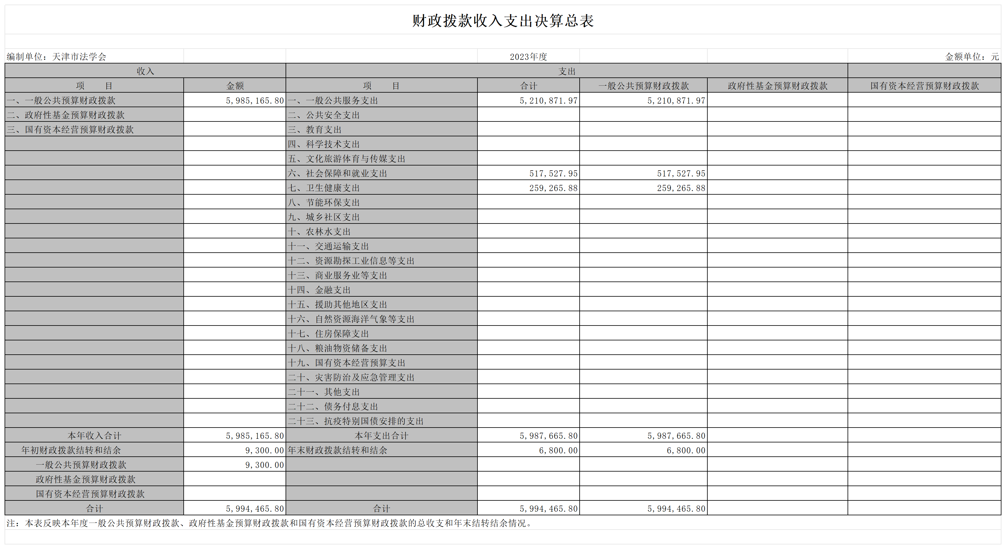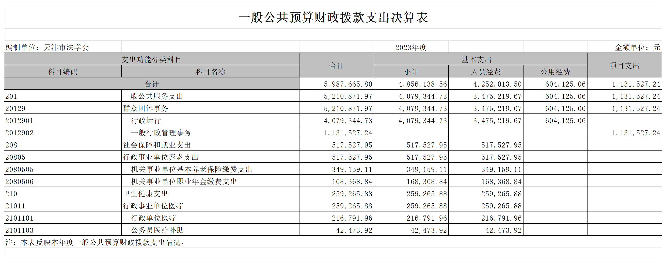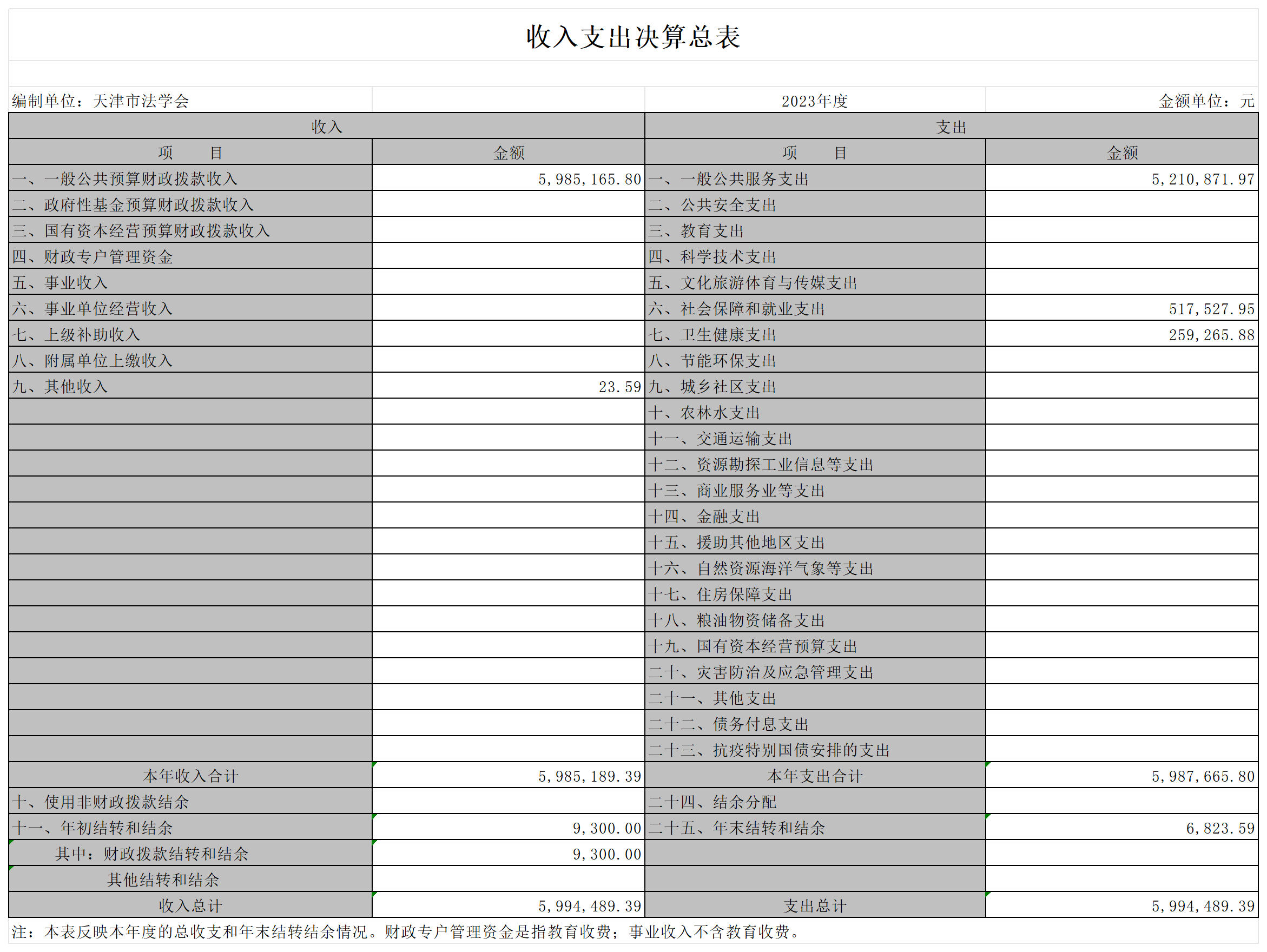 天津市法学会2023年部门决算公开