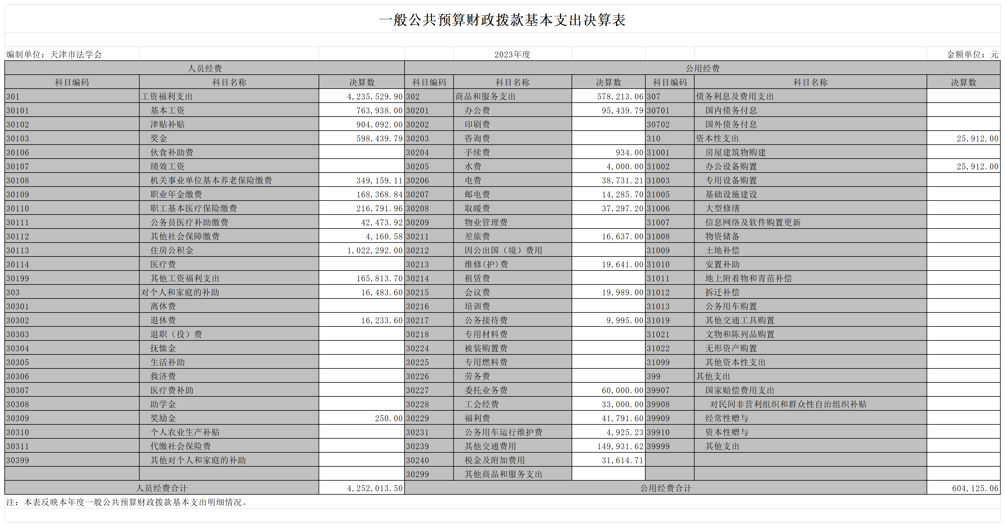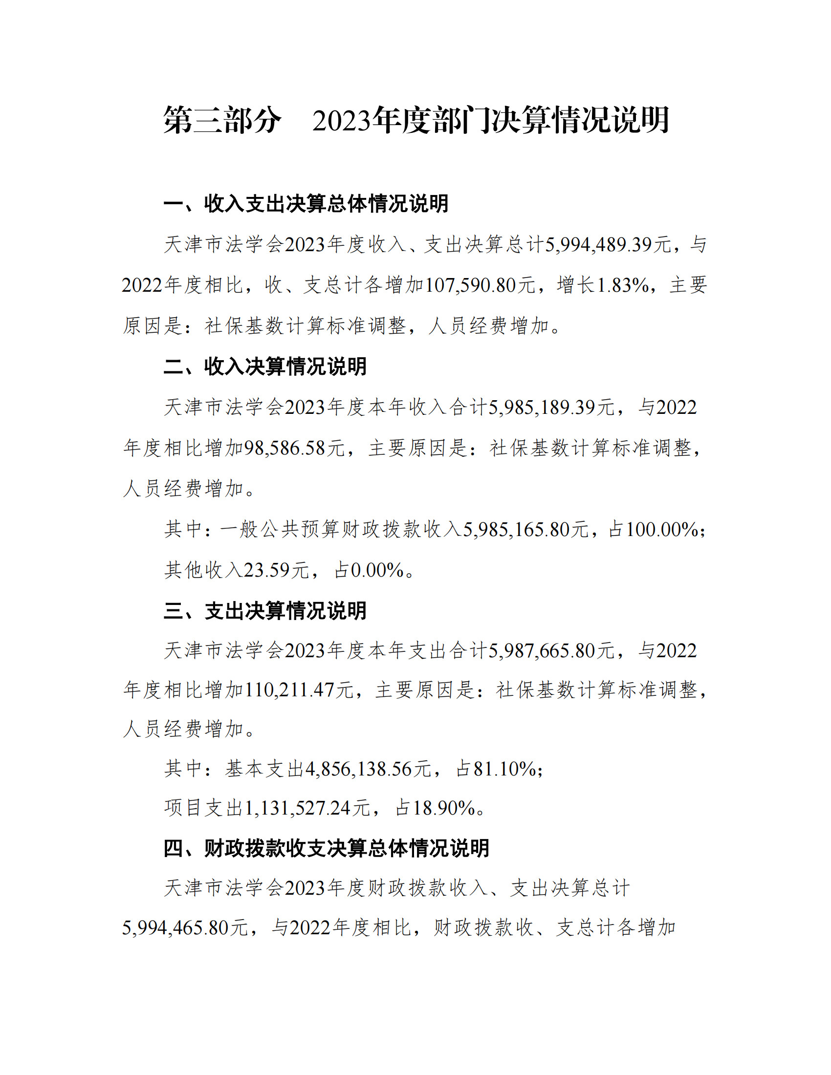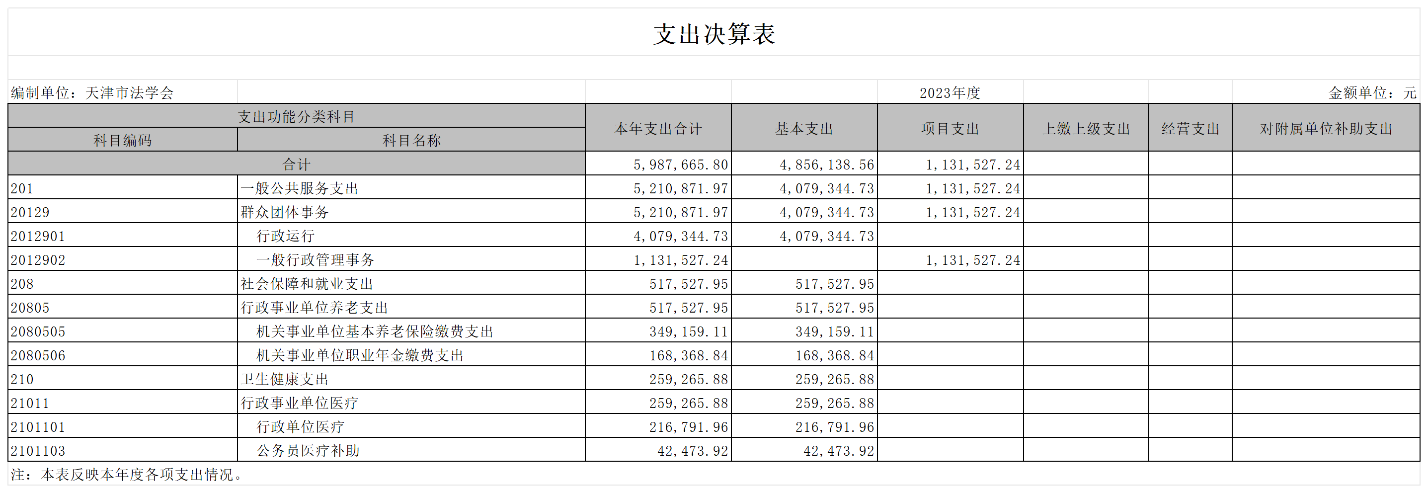 天津市法学会2023年部门决算公开