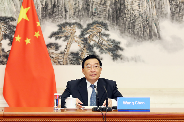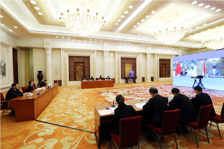 10月25日,中共中央政治局委员、全国人大常委会副委员长、中国法学会会长王晨在京与印度尼西亚国会副议长穆海敏举行视频会晤。