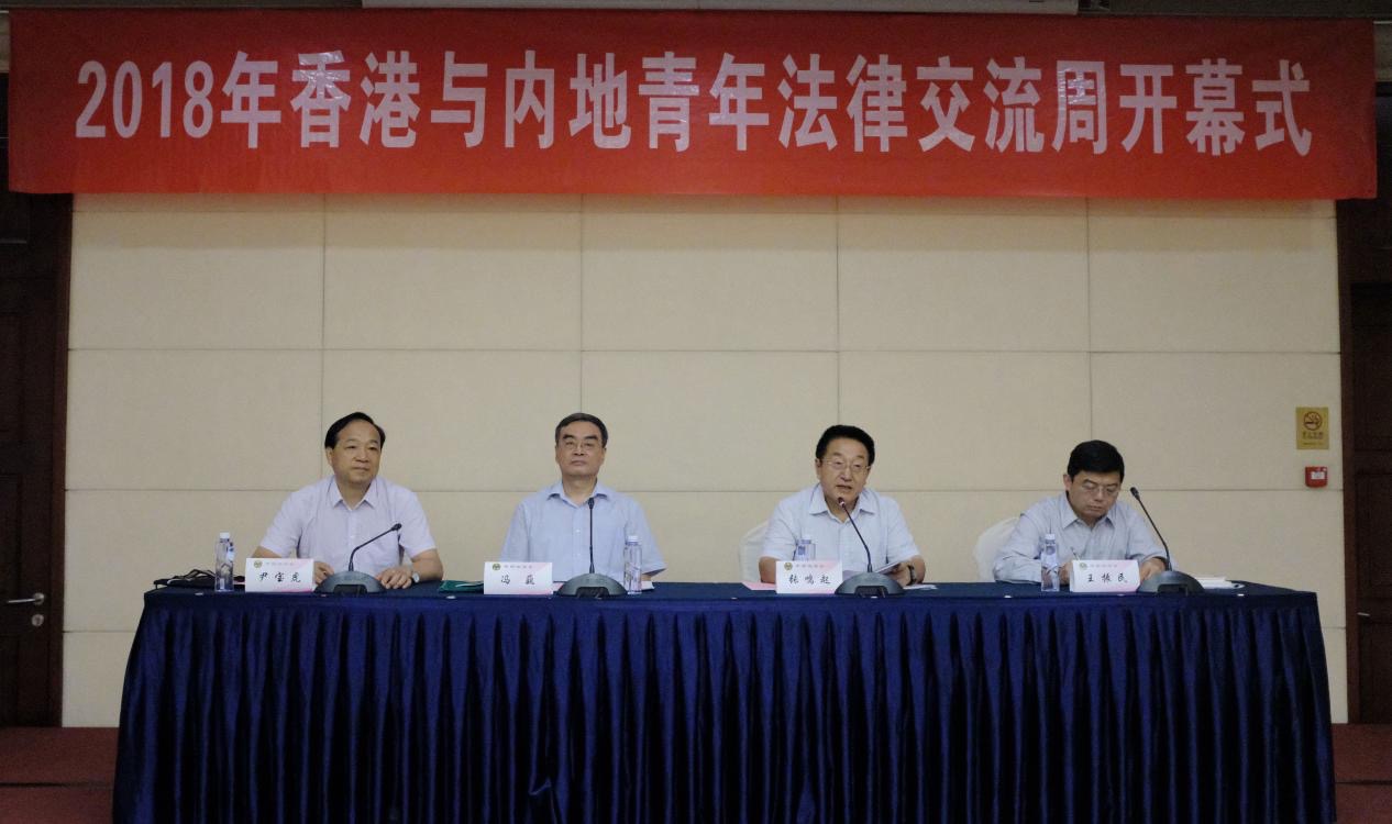 7月30日,中国法学会党组成员、副会长张鸣起,国务院港澳事务办公室副主任冯巍出席交流周开幕式并先后致辞。亚洲法律学生会香港大学分会主席、香港大学法学院一年级学生钟怀德代表团员发言。中国法学学术交流中心主任尹宝虎主持开幕式。中央政府驻香港联络办法律部部长、中国法学会香港基本法澳门基本法研究会会长王振民,中国法学会台港澳事务办公室副主任靳楠等出席开幕式。