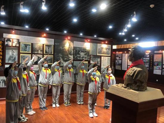 ▲今天上午,登高英雄杨连弟的故乡,北辰区北仓镇北仓小学全体师生收听收看纪念大会,学校还组织学生到校史馆参观学习抗美援朝战争精神,向杨连弟塑像致敬。