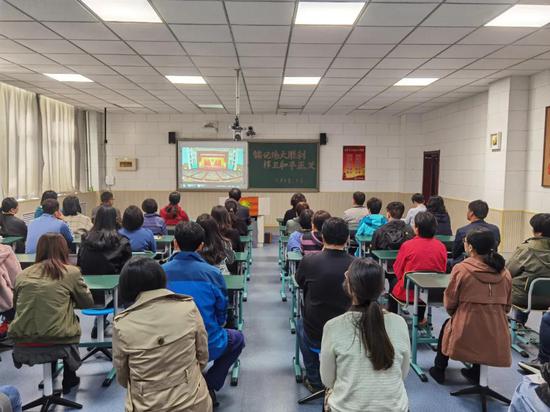▲红桥区天津三中教师和部分班级集体组织收看纪念大会。