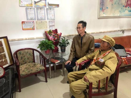▲抗美援朝老兵,北辰区双口镇双口三村杨树柏家中观看纪念大会。