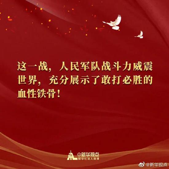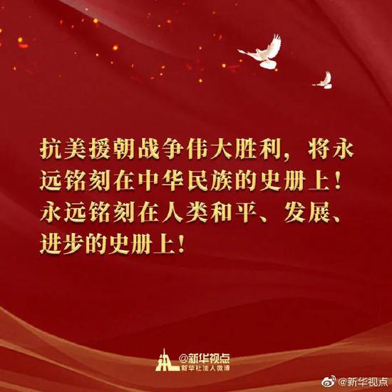 抗美援朝战争伟大胜利,将永远铭刻在中华民族的史册上!永远铭刻在人类和平、发展、进步的史册上!