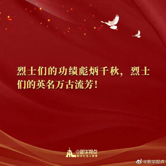——70年来,我们始终没有忘记老一辈革命家为维护国际正义、捍卫世界和平、保卫新生共和国所建立的不朽功勋,始终没有忘记党中央和毛泽东同志当年作出中国人民志愿军出国作战重大决策的深远意义。此时此刻,我们要向老一辈革命家,表示最深切的怀念!