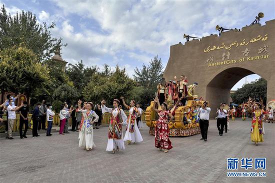 新疆喀什古城景区举行开城仪式,欢迎游客入城游览(9月11日摄)。新华社记者 马锴 摄