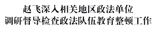 连日来,市委常委、市委政法委书记、市政法队伍教育整顿领导小组常务副组长赵飞先后深入市监狱管理局,和平区、河东区、河西区、红桥区、南开区政法队伍教育整顿领导小组办公室,市第二、第三指导组工作驻地,调研督导检查我市第一批政法队伍教育整顿工作。