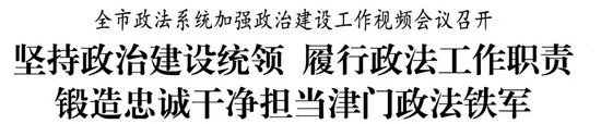 会议要求,全市各级政法机关和广大政法干警要坚决贯彻落实党中央和市委部署要求,吃透基本精神,加强政治建设,始终在政治立场、政治方向、政治原则、政治道路上同以习近平同志为核心的党中央保持高度一致,紧紧围绕打造忠诚干净担当津门政法铁军主线,重点在“五个方面”持续加力、久久为功。一是在筑牢“两个维护”思想根基上持续加力。要坚持用习近平法治思想武装头脑,注重理论联系实际,悟透法治理念和实践要求,深化政治认同、思想认同、理论认同、情感认同,铸牢政治忠诚之魂。二是在加强党对政法工作的绝对领导上持续加力。要牢牢把握、坚决履行党委政法委领导职能,坚持系统观念,加大“统”的力度,查找差距短板,破解堵点难题,在工作格局、思路、战法上进行变革,构建实战导向工作体系。三是在筑牢首都政治“护城河”上持续加力。要提高政治敏锐性、政治鉴别力,善用信息化网络化手段,提升风险预警防范能力,完善矛盾风险排查化解治理机制,打造安全稳定坚固防控体系,坚决维护政治安全和社会稳定。四是在执法司法为民上持续加力。要牢记民心是最大的政治,坚持以人民为中心,树立“服务群众是本职、服务不好是失职”的鲜明导向,坚持严格规范公正文明执法,让人民群众在每一起案件办理、每一件事情处理中都能够感受到公平正义。五是在抓班子带队伍上持续加力。要压实“一把手”第一责任人责任,从“关键少数”抓起,从领导干部做起,以上率下、示范带动,持续整治不担当不作为问题,锻造政法队伍敢于担当的政治品格,全面激发津门政法队伍建功新时代、奋进新征程的强大动力。