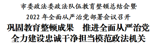 会议要求,市委政法委要坚持以党的政治建设为统领,扎实开展“迎盛会、铸忠诚、强担当、创业绩”主题学习宣传实践活动,不断提升政治判断力、政治领悟力、政治执行力,做到坚决维护核心、坚定捍卫核心、衷心爱戴核心、紧跟追随核心,确保党对政法工作的绝对领导。要持续发扬自我革命精神,坚决肃清孙力军政治团伙等流毒影响,保持严惩执法司法腐败高压态势,狠抓监督制约制度建设,进一步强化“不敢腐”的震慑、扎紧“不能腐”的笼子、升华“不想腐”的境界。要锲而不舍整治“四风”顽疾,紧盯群众反映的执法司法突出问题,常态化开展专项排查整治,深化“我为群众办实事”实践活动。要严防形式主义官僚主义,加强调查研究,建立为基层减负常态化机制,提高工作的科学性精准性。要加强年轻干部教育管理监督,突出“严”的鲜明导向,狠抓思想政治建设,扣好廉洁从政的“第一粒扣子”,守住政治关、权力关、交往关、生活关、亲情关。要压实全面从严管党治警政治责任,构建明确责任、履行责任、监督落实责任、精准追究责任的完整链条,完善管思想、管作风、管纪律的管理体系。要推进全面从严管党治警与政法工作深度融合,做到同部署、同落实、同检查、同考核,立足天津之特,扛起卫城之责,汇聚新时代天津政法工作高质量发展的强大势能,筑牢首都政治“护城河”,以优异成绩迎接党的二十大胜利召开。