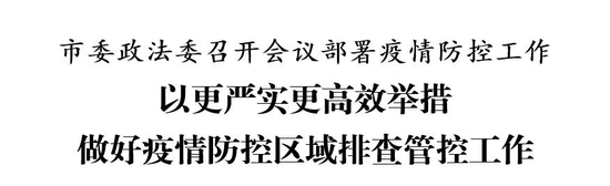 3月18日下午,市委政法委召开会议,传达学习贯彻习近平总书记在中央政治局常委会会议上的重要讲话精神,落实市委、市政府疫情防控工作会议暨市疫情防控领导小组和指挥部会议部署要求,研究区域排查管控工作,提出明确要求。市委常委、市委政法委书记赵飞出席会议并讲话。