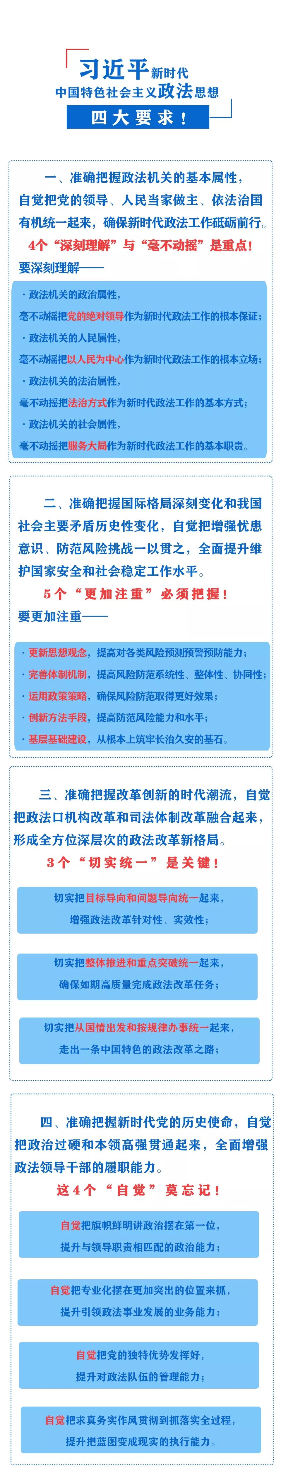 开班式上,中共中央政治局委员、中央政法委书记郭声琨作重要讲话,他表示,习近平总书记在领导政法工作谋新篇、开新局实践中,以马克思主义政治家、理论家、战略家深邃的洞察力、精准的判断力、超前的谋划力,科学回答了事关政法工作全局和长远发展的重大理论和实践问题,提出了一系列新理念新思想新战略,形成了习近平新时代中国特色社会主义政法思想。 第一次,中央领导同志在公开场合提出“习近平新时代中国特色社会主义政法思想”的概念。伟大时代诞生伟大思想,伟大思想引领伟大征程,习近平新时代中国特色社会主义政法思想势必将推动新时代政法事业开辟新的境界。